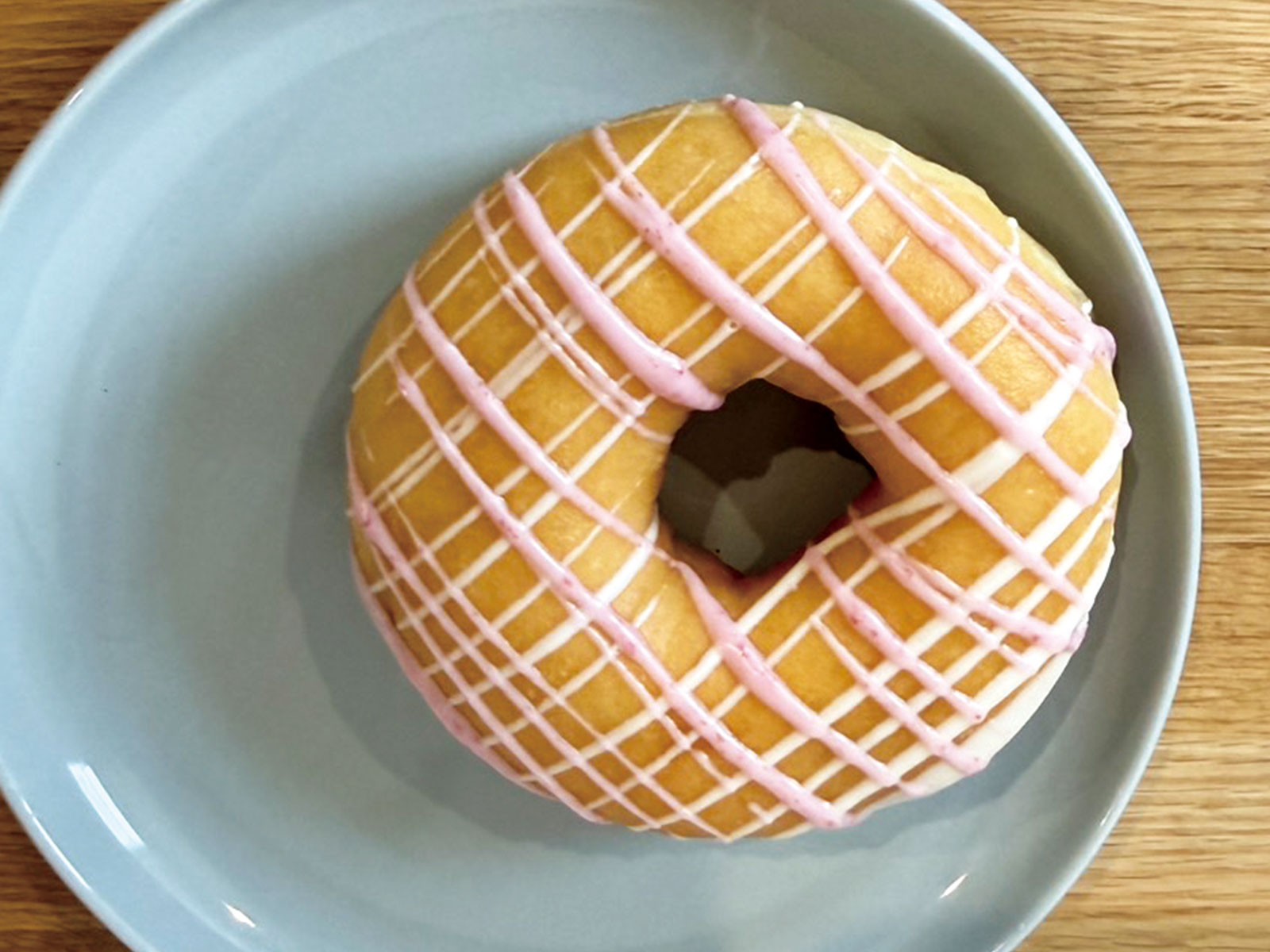 オープンから3年、未だお店には列が出来るほど人気♪常時22~23種類のドーナツが並べられ、ココでしか食べられないドーナツや、季節に合わせた期間限定商品もあります☆紹介するのは「桜クランベリー」。ホワイトチョコとイチゴチョコがかけられて、桜の香りがふわっと香る、春を感じる4月~5月限定のドーナツです。ふわふわのドーナツに練り込まれたドライクランベリーの甘酸っぱさがアクセント☆