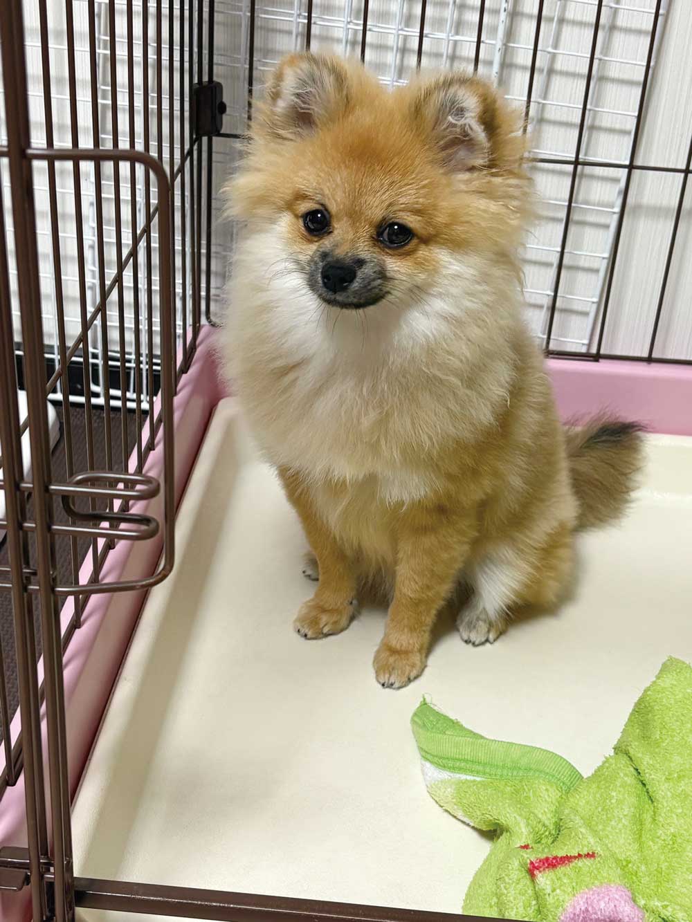 ケージから出たい!待てと言われ様子を窺っているタヌ☆