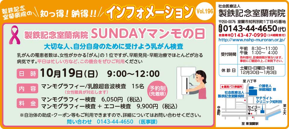 製鉄記念室蘭病院SUNDAYマンモの日