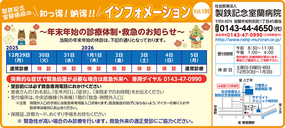 年末年始の診療体制・救急のお知らせ